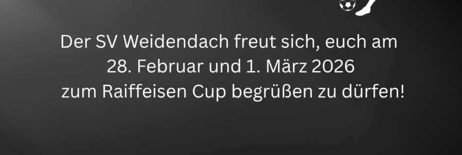 Der SV Weidendach freut sich, euch am 28. Februar und 1. März 2026 zum Raiffeisen Cup begrüßen zu dürfen!